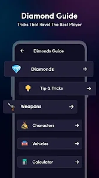 任何战斗皇家游戏的有趣之处之一就是皮肤、VIP枪皮肤、舞蹈和表情。《每日钻石FFF指南》应用程序为用户提供了皮肤工具配置FF、精英通行证捆绑包、模式最稀有的表情、赢取VIP通行证的提示、车辆模拟皮肤、最稀有的表情Garina和传奇枪支皮肤。该应用程序还包括一个提高钻石知识的测验和一个钻石计算器,帮助用户选择最佳方法尽快在他们的账户中拥有他们想要的钻石。